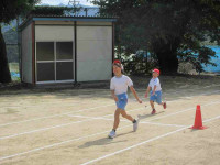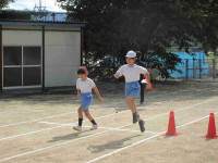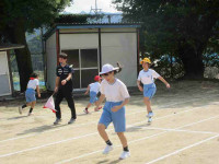 5時間目は、全校体育。涼しい秋の風を感じながら、スキップや小走り、モモ上げなど、いろいろな走り方で運動場を駆け抜けるこどもたち。久しぶりの外での運動を思いっきり楽しみました。これから、ハードル走へと単元は進みます。