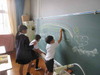 2025年10月23日 16時33分 今日は陸上記録会です。4~6年生は早朝、ひうち陸上競技場へ出発!1年生と3年生は3人で楽しく1日を過ごしました。いつもは5・6年生がしてくれている給食の挨拶も今日は3年生が挑戦です。休み時間には、教室に「おつかれさま」の気持ちを込めた、サプライズメッセージを用意しました。