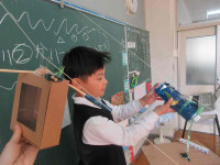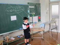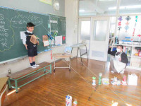 2025年12月3日 15時51分 1年生は、図画工作で「スルスルビューン」という教材に取り組みました!前回、4つの作品が仕上がり、その速さを競うトーナメント戦を行いました。今日は、さらに4種類増やし、第2回スルスルビューン大会の開催です。保健の先生に審判員として来ていただき、さあ、試合開始です。1年生は、作品一つ一つになりきって自己紹介をし、意気込みを語りました。さて、今回勝利に輝いた作品はどれだったでしょう?
