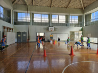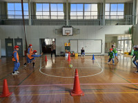 2026年2月17日 15時39分 今日の全校体育は、昨日に続きフロアバレーの3回目。試合の中でトスもできるようになり、今日はブロックの練習も行いました。試合になると、ブロックをする児童と、後ろに抜けたボールをしっかり拾って返す児童に自然と別れて、どちらのチームもどんどん得点を重ねていきます。今日も白熱した試合展開に、手に汗握りました。