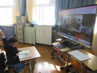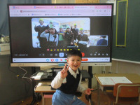 1年生は、田野小学校の1年生とオンラインで国語の学習です。お互いの学校で作成した「これは何でしょう」クイズを、出し合いました。絶妙な問題とヒントに、「なるほど!」、「そっちかあ!」と声を上げる1年生。あっという間の1時間でした。来年の交流学習でまた会える日がとても楽しみになりました。